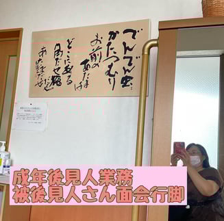 画像の書は、被後見人さんが書いたもので、以前は自宅に飾っていた書を今は施設さまの玄関に飾っていただいています。